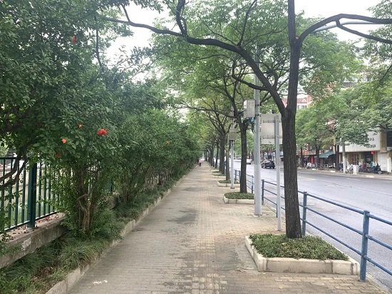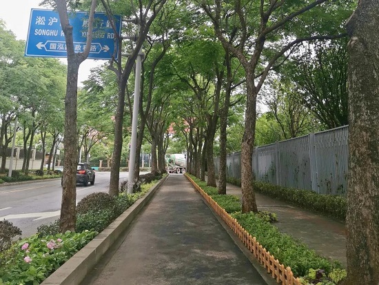 其中,清波路(政和路—江灣城路)全路段總長約為170米,行道樹品種為欒樹。