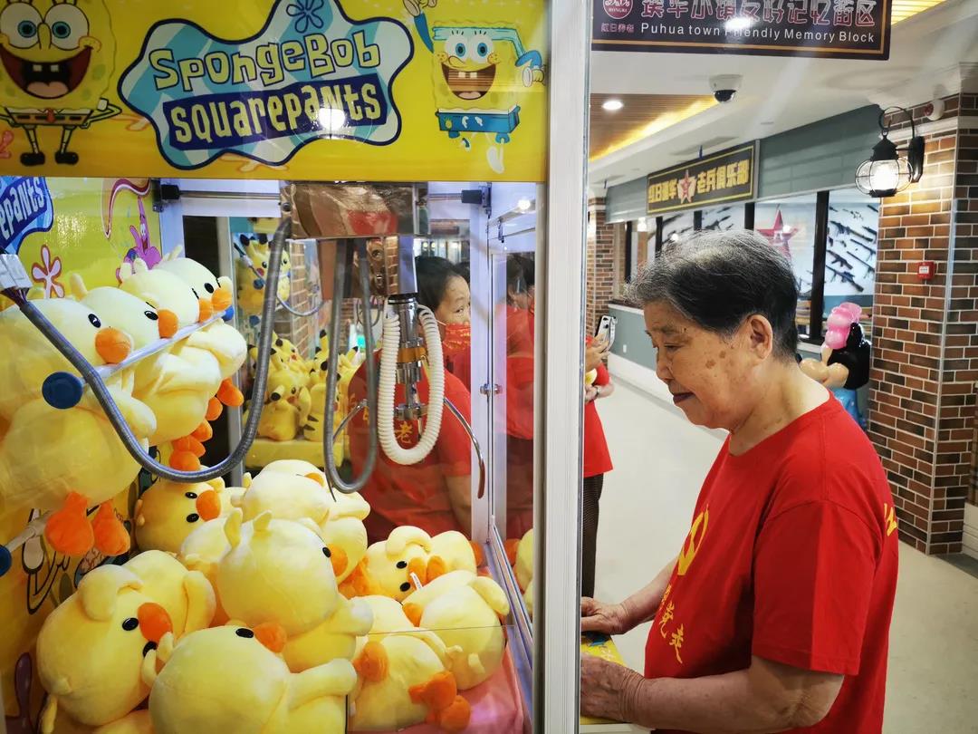 每一個老人的房間都朝南,并配備了陽臺,屋內的各類適老化設備也十分齊全。而在公共活動區域,一個主題街區匯聚了“贏多多棋王館”“璞華小鎮游藝館”“50°C元氣能量館” “紅日時間銀行璞華支行”等各類活動場所。
