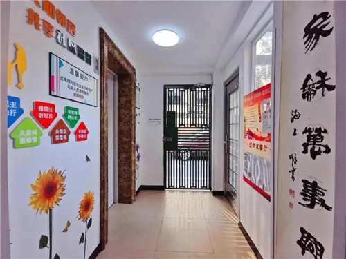 走進泰山二村12號樓,一副“家和萬事興”的書法作品映入眼簾,寫出了整棟樓和諧的氛圍!跋噱δ慈缳e、鄰里和勝遠親……”墻上的七塊文明裝飾牌,用簡單的文字訴說著這里溫馨的鄰里文化。
