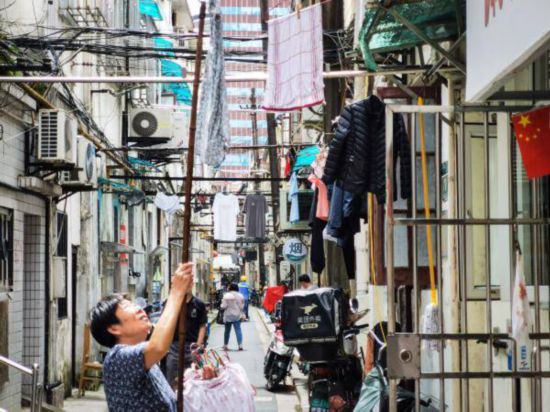 南京路步行街,從“保安坊”里弄走進去,沿著彎彎曲曲的弄堂往里走,是一大片低矮破舊的里弄房屋。這里是黃浦區外灘街道東風居民區——福建路舊改地塊中最靠近南京路步行街的居民區,有幾戶居民家就住在南京路步行街沿街房的樓上。