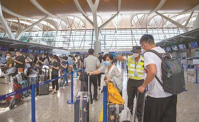 自8月1日起,美國放開留學生赴美限制,持有F/M簽證的學生不再受“赴美禁令”影響,可直接由中國前往美國,無需在第三國中轉隔離14天。8月中旬起,學生集中赴美迎接秋季開學。根據不同目的地防疫政策及入境政策要求,旅客在辦理值機手續時需要核驗各類證明材料及入境文件。另外,不少留學生因疫情去年只能在家上網課,今年終于得以返校,所帶行李較多,“趕早”辦理行李托運。國泰航空區域經理秦翔宇告訴記者,國泰航空目前有三個上海飛往香港航班,平均每班旅客達300人以上,托運行李件數達550件以上。