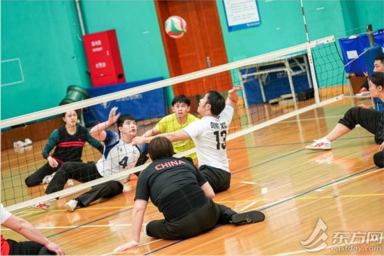 坐式排球運動員認真訓練,備戰殘奧會(資料圖)