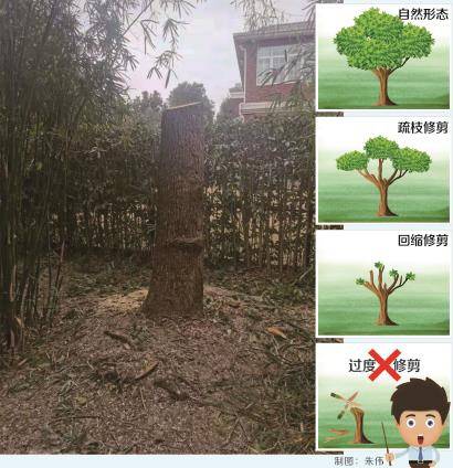 以香樟樹為例,一般修剪是指在保持樹木冠形的基礎上,定期對過密的枝條進行有選擇的修剪,重點去掉枯枝、病蟲枝等。只有特殊情況下,修剪的尺度才可以酌情放大,即采取“回縮修剪”。比如,此類樹木嚴重影響居民通風采光等情況!盎乜s修剪”后,至少保留2—3級以上的骨架,并逐步培養形成新的樹冠。如果修剪尺度超出“回縮修剪”的范疇,即本案例中僅保留2米左右高的主干,雖然樹沒有死,但屬于因過度修剪導致樹木在一個生長周期內未能恢復冠形的情況,可認定為砍伐。