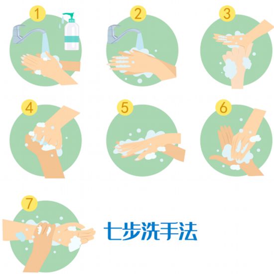 回到家后,及時使用“流動水+肥皂/洗手液”按“七步洗手法”洗手。