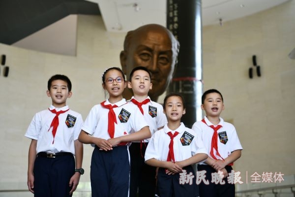 圖說:星空少年講解團的成員們 新民晚報記者 孫中欽 攝(下同)