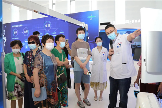 活動現場,長三角(上海)智慧互聯網醫院的工作人員首先通過觀看視頻、演示講解等形式,介紹了醫院積極創新探索一體化醫療新模式、新機制,推進智慧互聯網醫院平臺數字化樞紐建設,打造一站式全生命周期區域新型分級診療的服務模式。隨后,工作人員帶領市民參觀了服務大廳、互聯網診室、“五大中心”(互聯網醫療中心、病理診斷中心、云影像診斷中心、醫學檢驗中心、遠程門診和多學科會診中心)、智慧病房等區域,數字化醫療、便捷醫服務等智慧互聯網醫院的獨特優勢,引得在場市民連連稱贊!巴ㄟ^此次參訪,我看到了先進的互聯網技術對民眾帶來的就醫的便利性,讓我印象最深刻的是在診室,可以通過視頻與醫生進行診療互動,市區醫療專家可以實時地對病人診查病情、開藥以及恢復建議,實現了‘家門口’看病就醫!眳⒂^市民何強說。