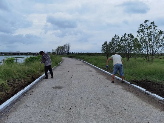 新塘港西鄰淀山湖,東接青浦區環城水系公園,總長6.3公里,有著防汛除澇、水資源調度的重要作用。為了進一步優化青浦水網構建和生態布局,新塘港河道整治工程不僅新建水利設施、疏拓開挖河道,還通過恢復西洋淀水面、新建沿岸景觀綠化等,打造新塘港水岸聯動、生趣盎然的綠色生態景觀。