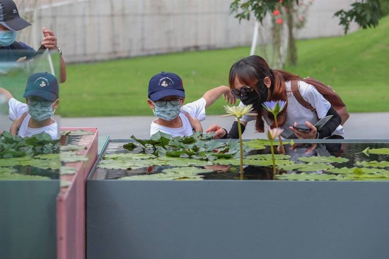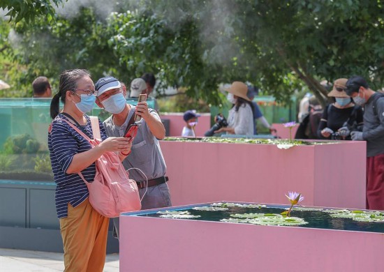 “2021辰山植物園睡蓮展”開展首日迎客流小高峰 疫情防控不松懈游客全程佩戴口罩