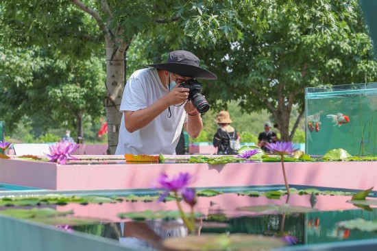 在位于1號門入口處內廣場、今年睡蓮展展區之一的“花影魚躍”區域可以看到,市民游客無論賞花攝影,還是溝通交流,都全程佩戴口罩,并自覺保持安全社交距離,并在花影、魚戲、鳥鳴的聯動中,體驗科技創新與自然浪漫的絕佳融合。同時,辰山植物園還通過網絡直播等新媒體傳播方式,讓更多無法親臨睡蓮展的觀眾更便捷地“云賞花”共享美景。