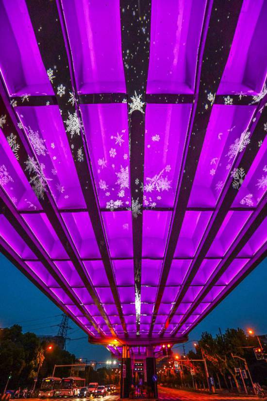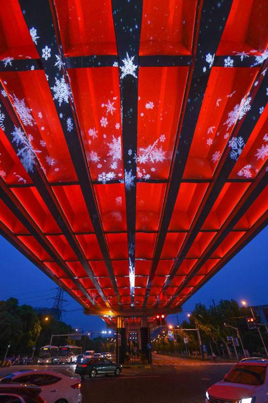 上海寶山:高架橋底上演七彩燈光秀,夜色竟然這么美……
