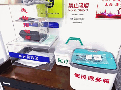 作為社區服務的基層窗口,受理中心也在不斷提升民生服務保障,針對老年人特殊群體開設了愛心專座,并免費提供老花鏡、飲用水、急救藥品等用品。
