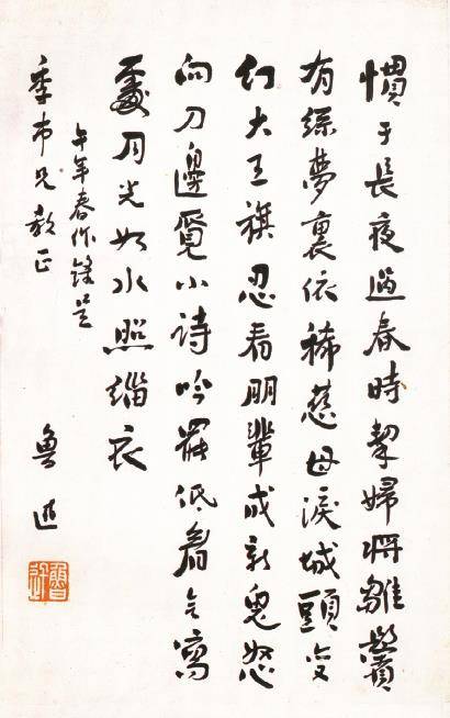 上海魯迅紀念館館藏的這幅《無題》,題款“午年春作”,詩中“眼看”已改為“忍看”,而“刀邊”還未改成“刀叢”。由于魯迅日記沒有記載這首詩最早的寫作時間,題贈給許壽裳的這幅詩稿題款時間,對推定該詩寫作時間有一定參考意義——1931年2月16日為除夕,庚午年最后一天,據此可推論此詩的寫作時間在2月7日(左聯五烈士遇害)至2月16日之間。