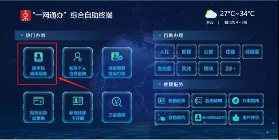 1、辦理人在“一網通辦”自助終端上點擊“隨申碼離線服務”入口。