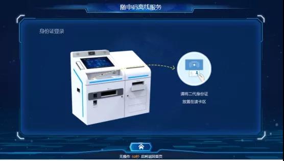 2、辦理人在自助終端選擇“身份證登錄”或者“隨申辦登錄”,使用身份證或“隨申碼”完成身份認證,申領“離線碼”。