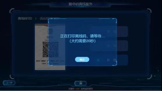 4、確認無誤后,點擊“申領”,通過自助終端打印“離線碼”。
