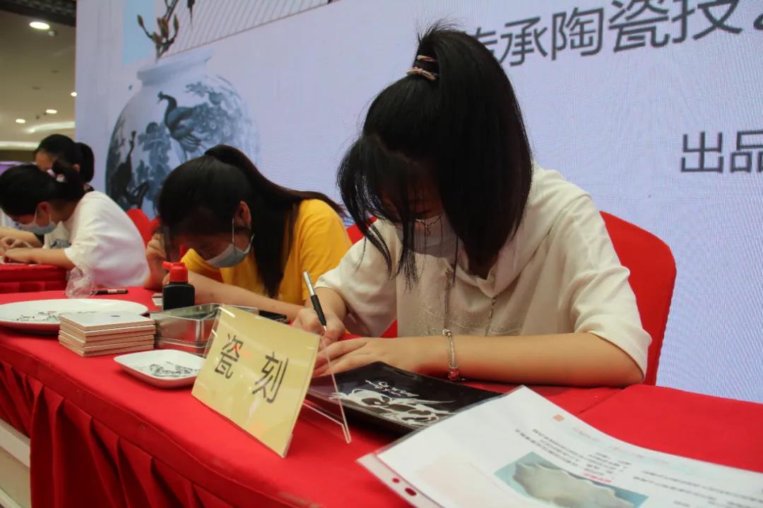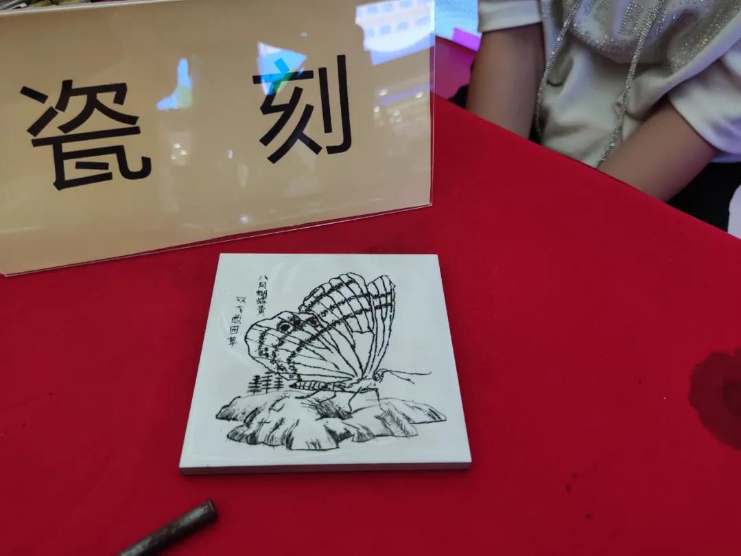 “這塊板是什么材質?雕刻的是什么?”一名非遺小傳人正全神貫注地雕刻一只蝴蝶,旁邊還有一句詩“八月蝴蝶黃,雙飛西園草!笨葱∨笥褌凁堄腥の兜臉幼,張雯潔停下了手上的工具,開始講述瓷刻的歷史由來和制作工藝。