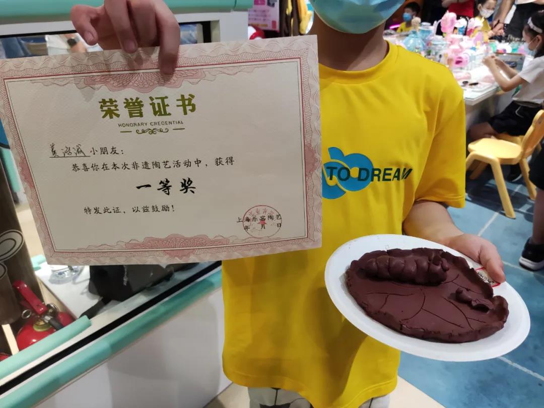 在隨后的作品評選環節,6歲的黃治誠獲得了一等獎,“很有意思,我不但知道了陶藝的歷史,也自己制作了陶藝小作品!彼踔髌方o大家欣賞,樹葉上除了胖嘟嘟的毛毛蟲還有一只小金魚,整個作品做工精細又有富有創意。