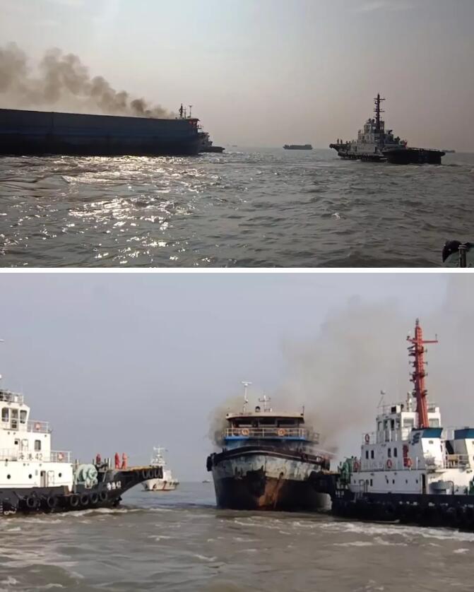 8月24日15時49分,寶山海事局指揮中心從上海海事局接報寶山南錨地一艘集裝箱船著火,隨即協調應急力量,調派4艘巡邏艇、4艘拖輪,共22名救援人員前往救助。