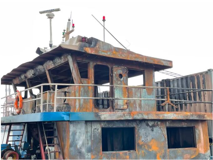 船主:不知道什么時間就起火了,用滅火器、水都無法滅火,就急忙撥打119,海巡警沒一會就到了,真的很感謝寶山海事。
