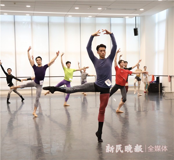 今天的大考不僅限于基訓課的成果檢驗,還包括舞段的排練及獨舞的展示,可謂360度無死角全方位考核。上芭首席主要演員吳虎生掛著1號號碼牌,站在C位,“一哥”自然是標桿,無論是從動作的準確程度還是一絲不茍的態度上都可見一斑。盡管在這個“家”一樣的排練廳日復一日進行著差不多的訓練,但他內心也有忐忑:“畢竟是年度考核,內心總有波瀾,但芭蕾舞演員,在臺上面對的是成百上千的觀眾,心態調整也是必備技能之一!边^硬的心理素質也源自實力和自信:“再說芭蕾舞非一日之功,現在再來抱佛腳是肯定來不及的,就跟平時一樣發揮即可!