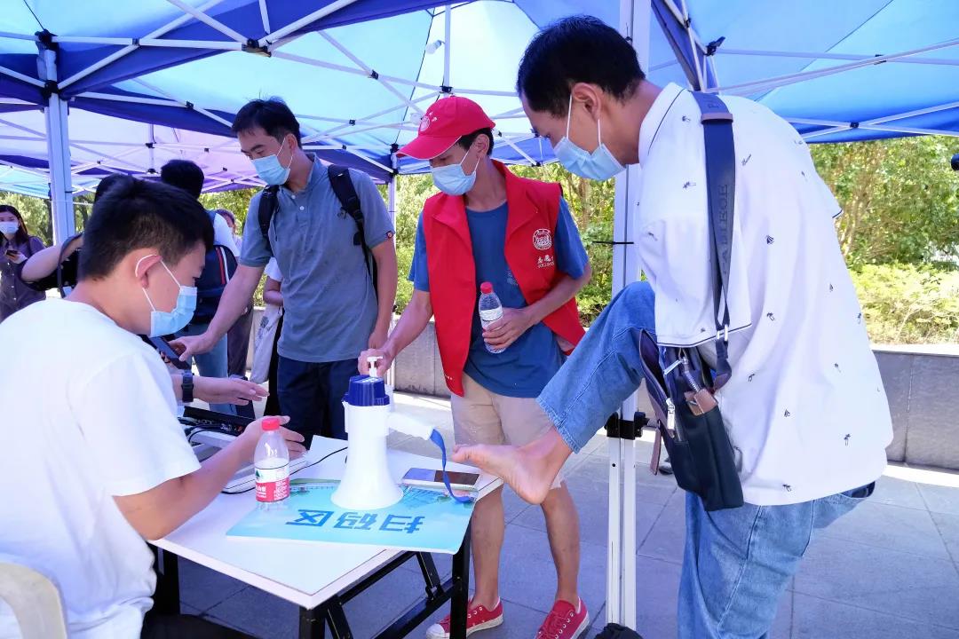 拿出手機掃碼,填寫個人信息,脫下口罩做核酸檢測,領取報道材料,去宿舍熟悉環境,整理個人物品……這一件件對旁人來說再普通不過的事情,彭超都需要用腳完成。
