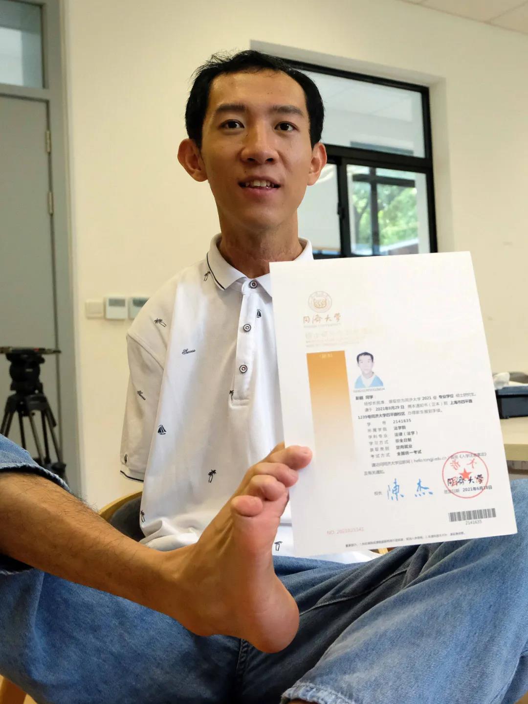 精彩人生用腳書寫!無臂男孩到同濟大學報道!