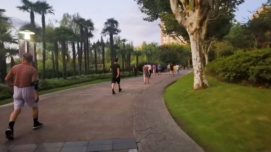 說到上海的跑步“地標”,世紀公園可謂是一塊響當當的牌子。8月17日晚8時,記者前往世紀公園。從軌交2號線4號口一出來,還沒過花木路的紅綠燈,就看見公園門口廣場上人群熙熙攘攘,走進一看,原來是各路廣場舞人士。