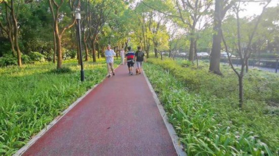 市民在熱線里提到的黃興公園,分布在國順東路南北兩側,占地39.86萬平方米。除了園內的觀光步道外,園外還有一條長2.5公里的綠道,繞黃興公園一周,植被豐富,吸引了周邊居民紛紛前來打卡健身。8月17日下午,太陽西沉,公園的人群逐漸多了起來;公園外的綠道上,也集聚著不同年齡段的人群:年長者一手拎著水瓶、一手拿著手機,在步道上慢跑;年輕人則將手機放在臂包里,大踏步向前跑去……