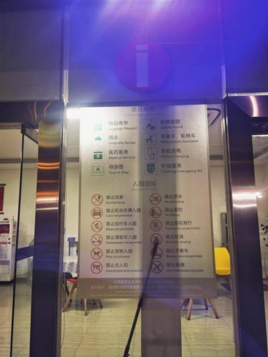 △世紀公園1號門門口的游客服務中心,便民舉措第一項便是“物品寄存”。
