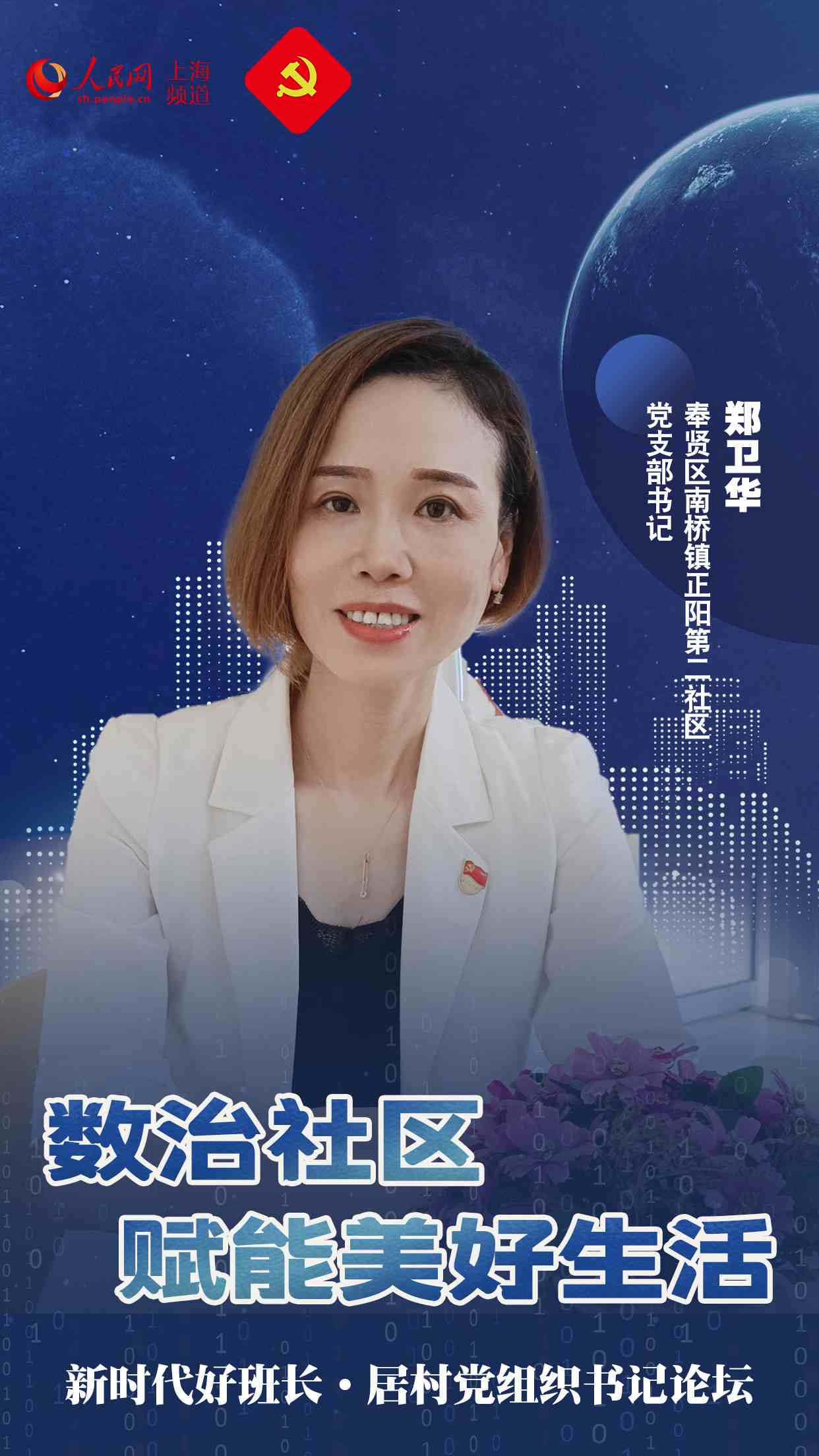 奉賢區南橋鎮正陽第二社區黨支部書記鄭衛華,來自全國唯一的化妝品產業之都東方美谷,鎮偉華在社區工作已經17年了,擔任居民區書記12個年頭。