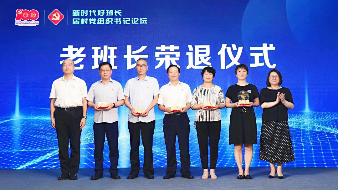 寶山區2021年居民區黨組織換屆中,有一批在社區默默耕耘數十年,為社區治理做出了貢獻的老書記離開了書記崗位,論壇上,寶山區委組織部為老書記代表舉行了“老班長榮退儀式”,頒發榮退紀念牌。