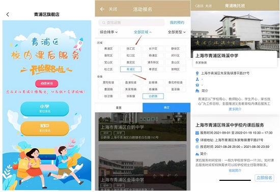 青浦區以“學校用心、教師貼心、學生開心、家長放心”為工作目標,全面推進義務教育校內課后服務工程再升級。本著“愿留盡留”的原則,放學后組織指導學生在校自主完成作業,對學習有困難的學生進行補習輔導,為學有余力的學生拓展提升,開設興趣課程滿足學生的多樣化需求。此次面向全區義務教育階段學校學生開展的校內課后服務線上報名活動,家長通過自主報名的方式進行,報名不限名額,不拼手速,歡迎各位家長積極報名。那么趕緊跟隨小編來了解下具體操作流程吧。