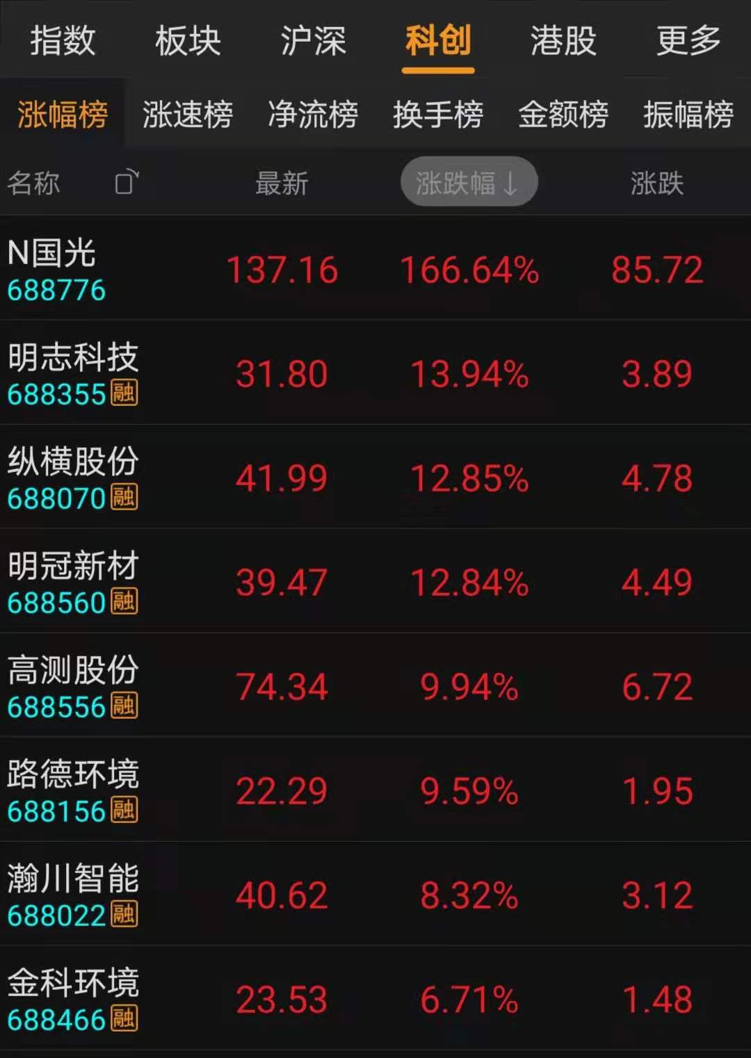 8月31日科創板漲幅榜