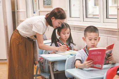 課后服務上海市第一師范學校附屬小學為學生提供課后服務。昨天,一名老師在輔導孩子寫作業。賴鑫琳攝