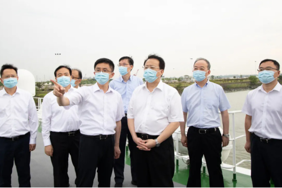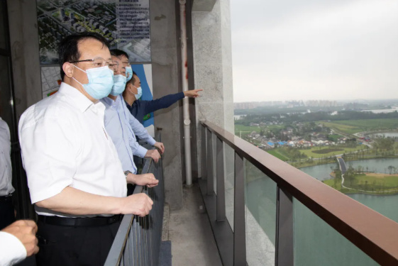 下午,龔正一行來到閔行濱江區域,登高眺望十字水域四象限實景,并走進江邊綠地,實地察看黃浦江岸線貫通及生態建設情況。隨后,市領導赴奉賢濱江區域了解有關情況,并乘船順流而下,一路察看兩岸現狀,聽取未來規劃構想。