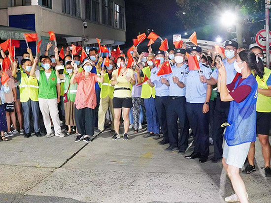 截至9月2日晚,界龍花苑小區已順利完成了第四次全員核酸檢測。曙光到來,界龍花苑迎來“解封”,居民翹首以盼的正常生活終于重新回歸。(圖片均由浦東公安分局提供)