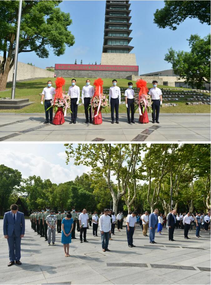 上午9點半,在莊嚴的國歌聲中,在上海淞滬抗戰紀念館勝利廣場上,社會各界代表在無名英雄紀念碑前向抗戰先烈敬獻花籃,全體肅立默哀,共同緬懷在抗日戰爭中英勇犧牲的英烈和不幸遇難的同胞。儀式結束后,不少市民自發前來參加紀念活動,在“匯聚”勝利火炬臺前的草坪上,市民們向抗爭中犧牲的先烈和同胞們一一獻上白菊花,表達緬懷和崇敬之情。