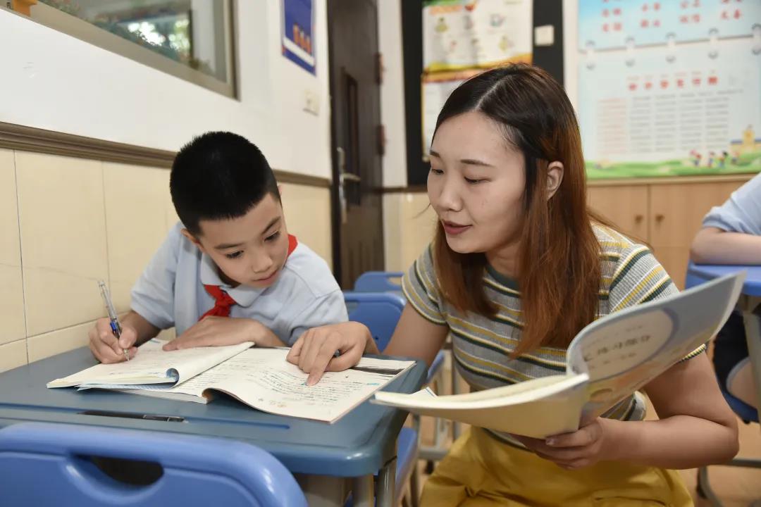 走進五年級教室,記者看到同學們紛紛拿出作業本,安靜地寫著作業。值班老師不時走到學生中間,為大家答疑解惑。作業寫得快的學生,老師還會給他們一些課外書去閱讀。