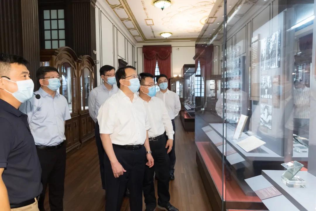 隨后,市領導來到位于體育大廈的上海體育博物館,依次走進歷史之舟、奧運之光、活力之城、未來之城展廳,通過一件件有故事的藏品,深入了解上海體育事業走過的不平凡歷程。