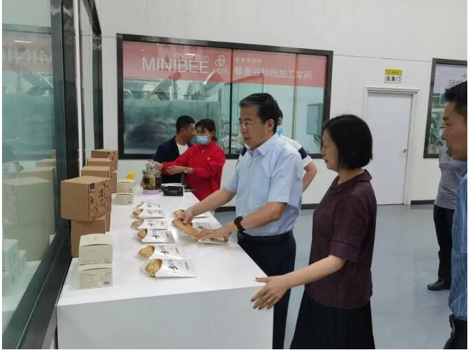 調研組首先到小蜂農業二期工廠實地查看馕產業發展推進情況。在了解當前囊產業發展中存在的難點和困難后,侯繼軍要求,一是堅持馕坑工藝,注重產品研發,緊貼市場需求。二是結合當地要求,加快產品投放,擴大銷售渠道。侯繼軍對馕等莎車特色農產品在生產及銷售過程中相關細節還提出具體指導建議,特別強調生產安全、食品安全及如何解決后期產品須經加熱還原問題等。
