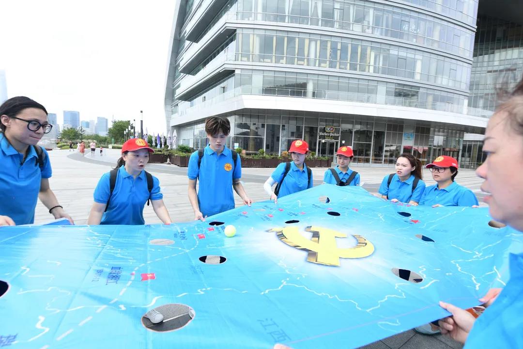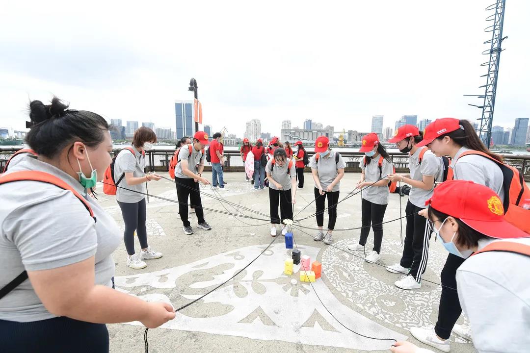 儀式結束后,現場還舉辦了形式多樣的楊浦職工紅色文化尋訪活動,包括黨史知識問答、拼圖、合唱、創意合影等,大部分活動需要新會員分組進行,“團隊協作有利于我們快速熟悉,并且培養團隊精神!本视腥さ幕顒拥玫搅爽F場參與者的一致好評。