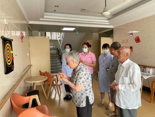 “今年的生日能和大家一起過太開心了!”黃阿婆喜笑顏開地說道。為了緩解老人因思念家人而產生的焦慮情緒,敬老院為老人們精心舉辦了集體生日會,唱生日歌、許愿、吹蠟燭……滿滿的儀式感一個也不少,壽星們個個高興地合不攏嘴。自封院以來,敬老院院長李珍時刻關注著老人們的動態,為照顧老人的心情,除了安排老人與家人進行視頻聊天,帶領工作人員及時向老人們介紹滬上疫情防控形勢給大家樹立信心外,相比以往,敬老院還安排了更多豐富多彩的興趣活動,套圈、飛鏢、手工、畫畫、唱紅歌等輪番上陣,護理人員們絞盡腦汁讓住養老人成為“開心的老小孩”。就這樣,封院的日子繼續著,老人們的情緒狀態恢復往常,敬老院內時不時傳來歡聲笑語。