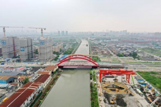 “鋼鐵飛虹”橋梁連接起了春申塘河兩岸。