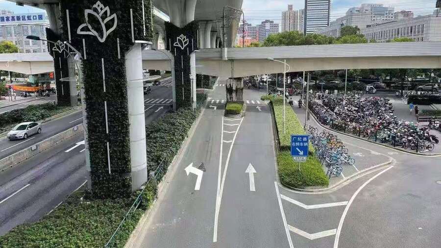 市公安交警部門也先后多次到現場調研察看,同意虹口提出的可行性方案,把中環高架下廣紀路這邊的半圓綠地路肩縮進去2.7米,這樣景明花園小區出行的車子要掉頭只需變更一根車道。