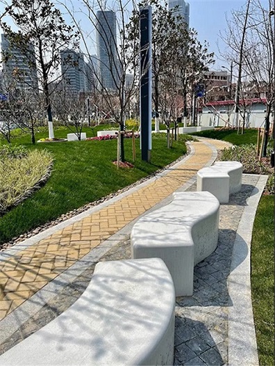 記者了解到,位于平涼路、大連路、楊樹浦路三條道路交匯處的平涼路綠地,是虹口區新近才建成的一個大型公共綠地。設計時以“海綿城市、綠色環!睘橹鲗枷,打造地形微隆、端莊大方的游園綠島。建設用地坪鋪裝主材為透水磚及透水混凝土,減少地表徑流,降低市政排水負荷,故排水設計中雨水口及雨水井數量較少,且雨水井達到環保半滲半排國標要求,力求綠色環保生態。土建主材除擋土墻、道路鋪裝為現場施工制作之外,LED泰克石發光坐凳、景觀燈光、園內指示牌均采用工廠預制現場快速安裝,縮短現場施工期并減少施工噪音,彰顯了“綠色環!崩砟。(特約通訊員 龍鋼 記者 袁瑋)