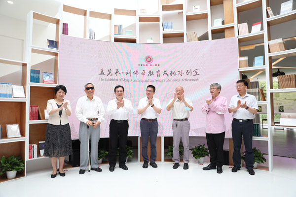 上海市委宣傳部副部長徐炯、市教衛工作黨委書記沈煒、市社聯黨組書記王為松、孟憲承先生弟子代表江銘、劉佛年先生弟子代表顧泠沅、華東師大黨委書記梅兵和校長錢旭紅一同為陳列室揭牌。