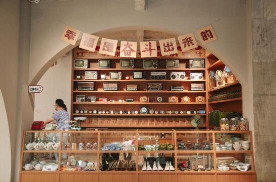 在紅潮供銷社,場景還原重溫火紅年代,以奮斗年代記憶的藝術品商店場景搭建來營造打卡拍照點,致敬紅紅火火的社會主義建設時代。