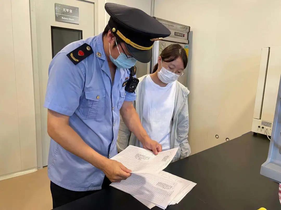 在華新鎮一家食品有限公司,執法人員按照“最嚴格監管”要求,從生產證照資質、臺賬記錄管理、環境衛生管控、從業人員健康管理、生產工藝流程等層層進行嚴格把關。通過深入生產一線,執法人員對企業的潔凈區、原料間、生產間、外包間、拆包間、成品間、留樣間、化驗室等地進行全流程監管。同時,還仔細查閱了企業索證索票、生產記錄、檢驗報告等臺賬資料。檢查發現,生產企業都能嚴格遵守《食品安全法》,并按照有關生產流程規范生產。