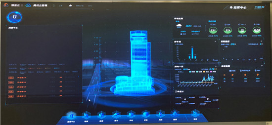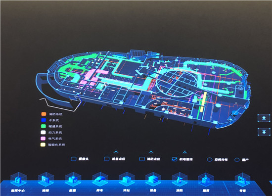 在蘭生大廈智慧樓宇平臺,由無數藍色線條組合而成的蘭生大廈智慧樓宇模型,恰如揚帆起航,乘風破浪。平臺上,攝像頭、消防點位、機電管線等一目了然。