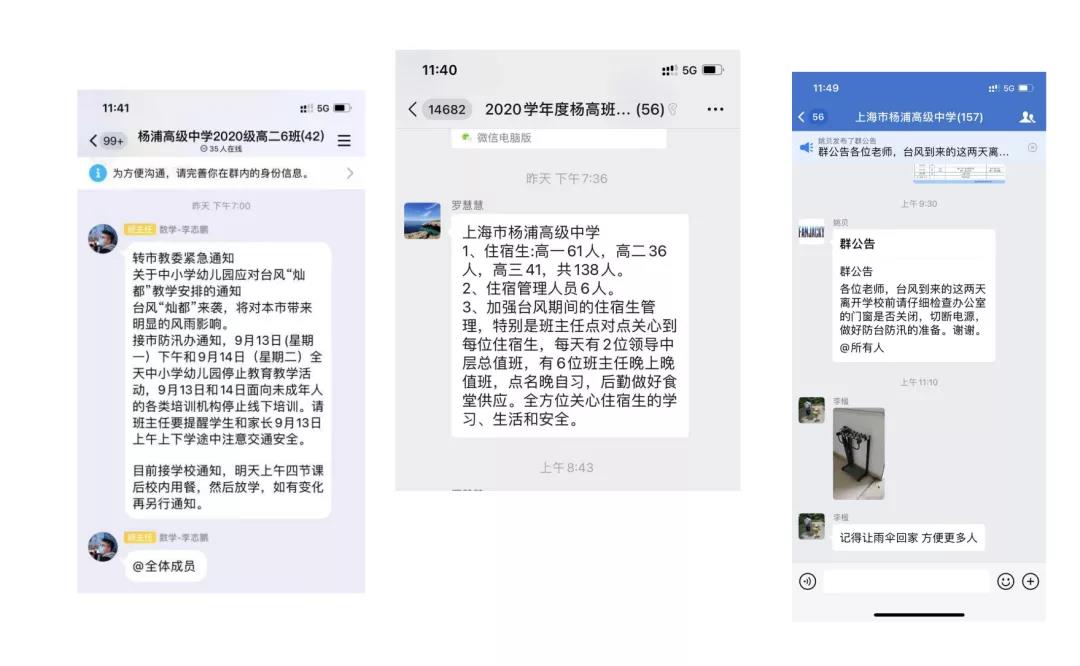楊浦高級中學也切實做好防汛防臺教育提醒,通過微信班主任群、班群以及電話等形式,加強家校聯系,提醒安全注意事項,強化安全防范意識。并通過升旗儀式,提醒廣大教職工、學生務必減少外出,遠離地勢低洼、高壓電線等危險區域,堅決防范安全事故發生。